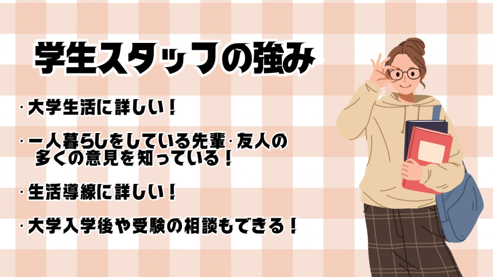 学生生活に詳しいスタッフとお部屋探しができます!