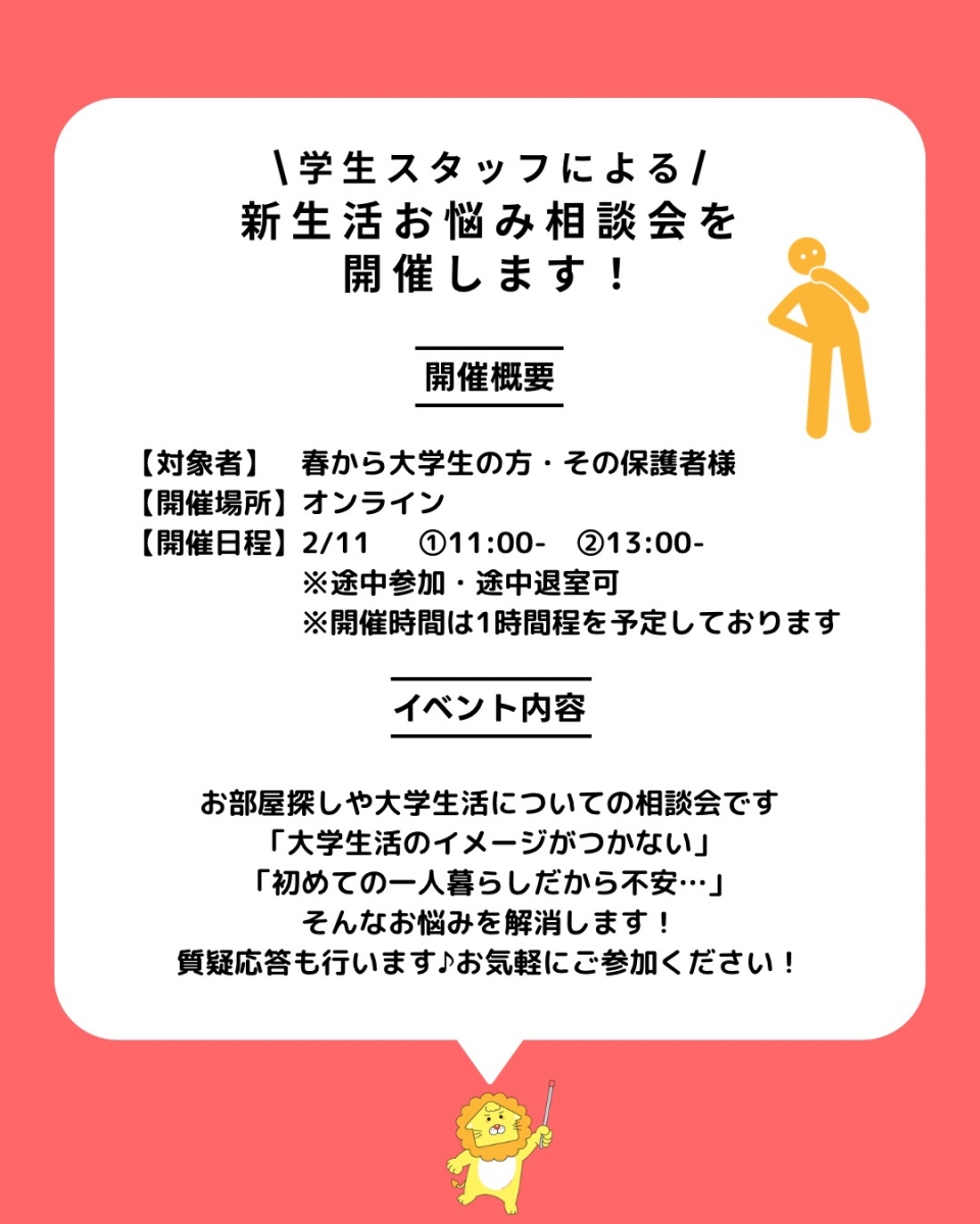 新生活お悩み相談会のお知らせ