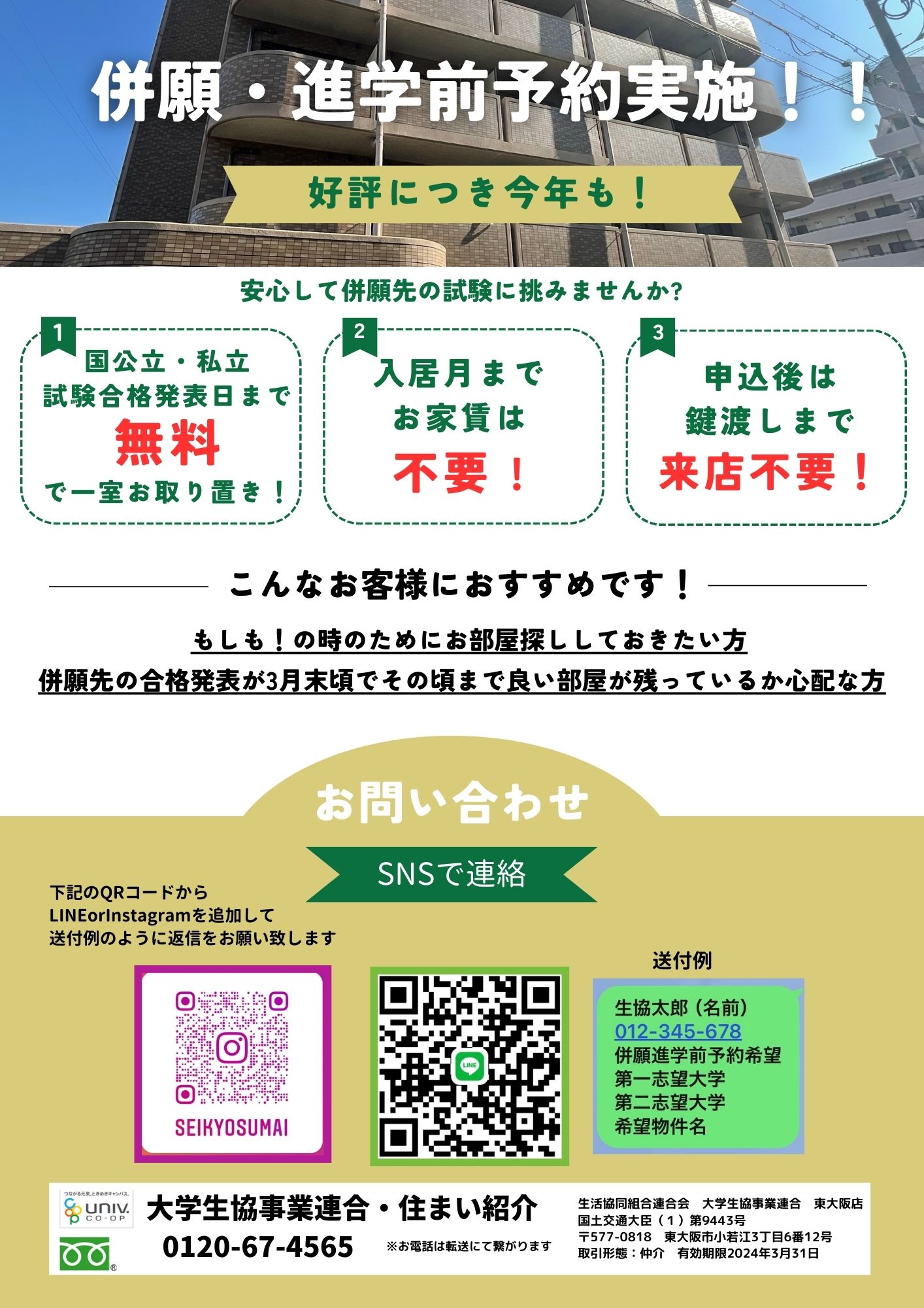 というお客様!一度大学生協の住まい探しにご相談ください!